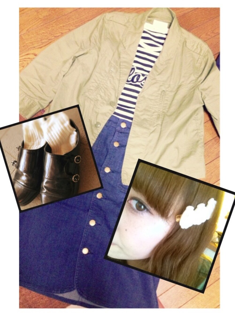 ぽかぽか〜♡ お出かけコーデ*° jacket / LOWRYSFARM Tshirt / Another Edition skirt / who's who chico socks / 靴下屋 shoes / Dholic hair accessory / khaju