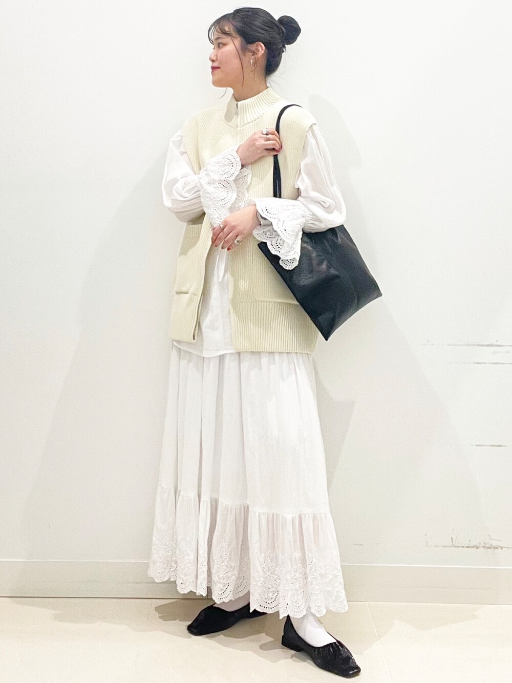mai(SENSE OF PLACE ららぽーと沼津)のベスト「ジップニットベスト」を使ったコーディネート