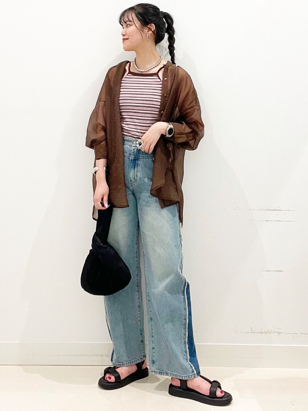 mai(SENSE OF PLACE ららぽーと沼津)のデニムパンツ「サイドパッチワークフリンジデニム」を使ったコーディネート