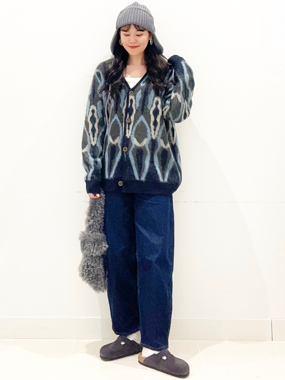 mai(SENSE OF PLACE ららぽーと沼津)のカーディガン/ボレロ「『ユニセックス』モヘアライクVネックカーディガン」を使ったコーディネート