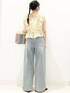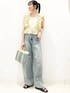 イエロー×デニムの元気な 夏コーディネートを組んでました♪ 私もリアルバイしました フリルオフショルブラウス! シアー感のある素材でフリルいっぱいの かわいいブラウスです◎ オフショルにできる2wayタイプ◎ インナーにはぜひ センスオブプレイスの カップ付きキャミソールを♪