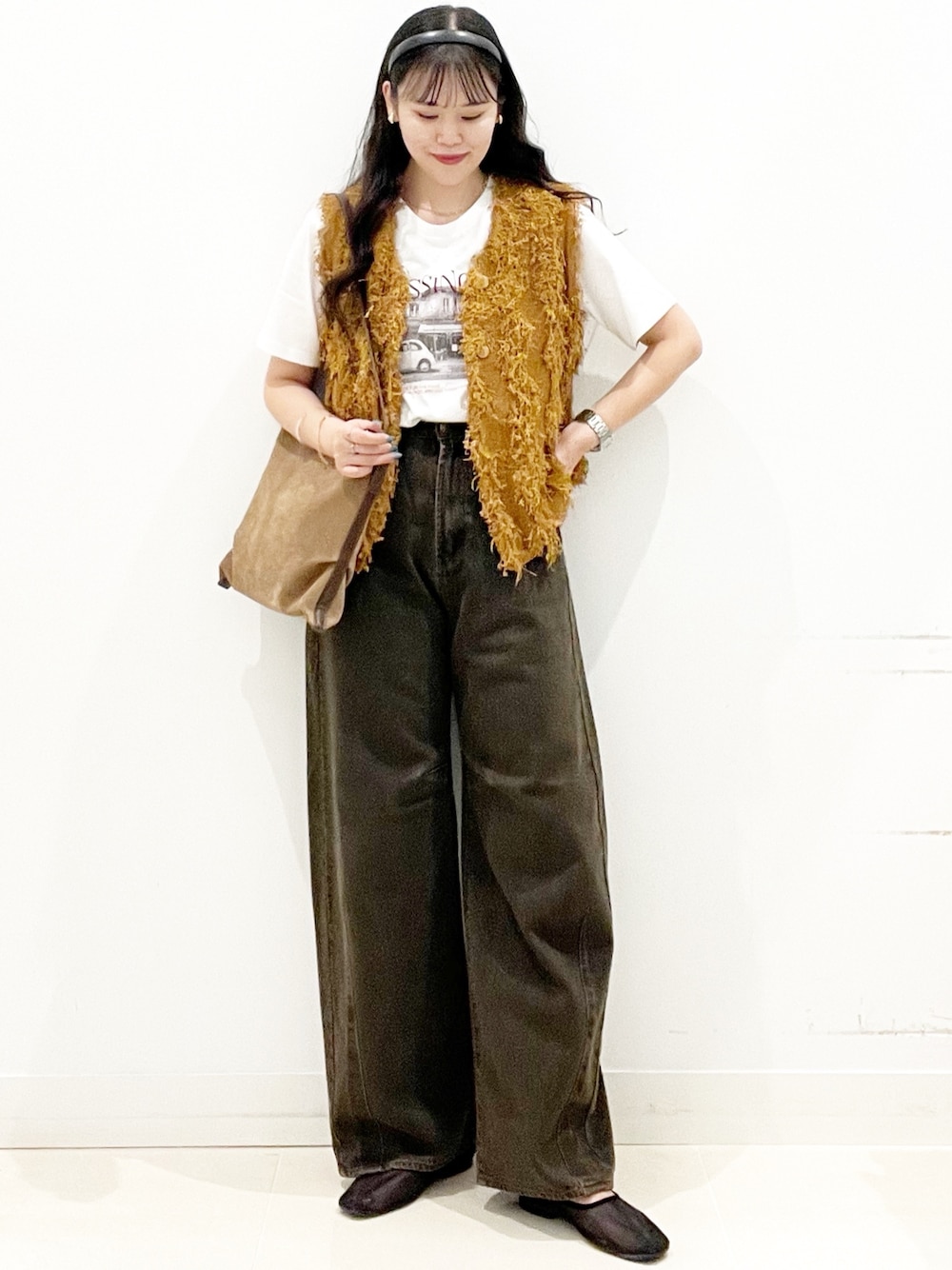 今回は秋を意識し始めた 晩夏コーディネートを組みました♪ 秋や冬になると着たくなる ファーやフリンジのベスト! 素材は厚すぎないニット地で 透け感があるので今からの季節でも 着ることができます◎ ラフにTシャツに合わせても、 ワンピースに合わせても可愛いアイテムです♡
