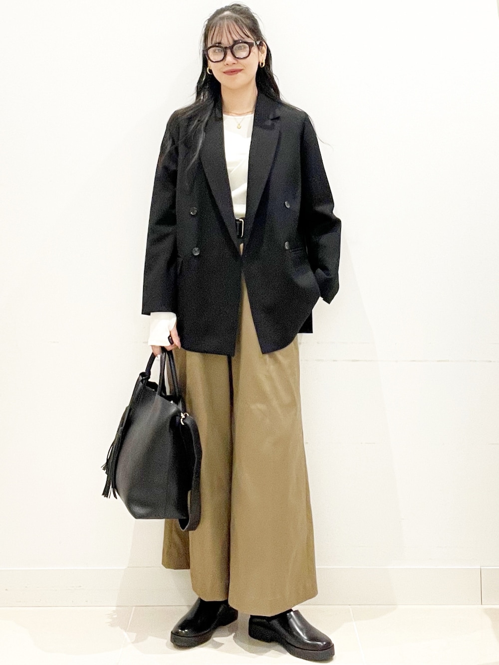 ルーズ感のあるジャケットで 秋のお出かけコーデを組んでみました♡ 秋になったら着たくなる 私の大好きなジャケット♡♡♡ 横には深めのすりっどが入っている おしゃれなデザイン◎ ボトムは高身長さんに おすすめな丈がしっかりあるパンツです◎