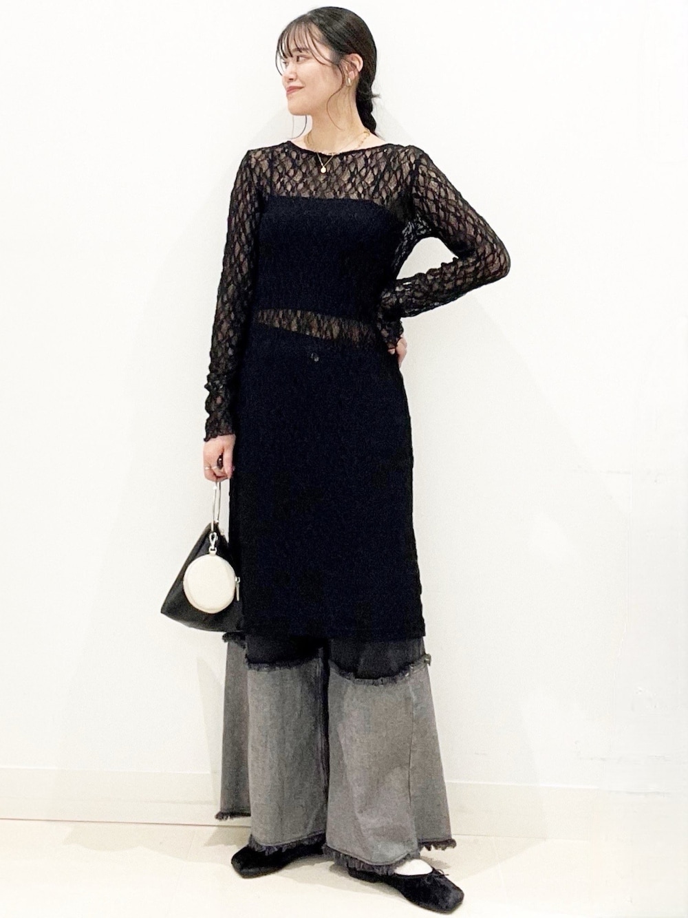ワントーンの大人コーディネート♡ 新作のレースワンピースは 大人な綺麗な印象に◎ キャミソールと合わせるだけで レイヤードが楽しめます◎ これからジャケットに合わせても おしゃれ◎ 伸びる生地なのでぴったりサイズです!