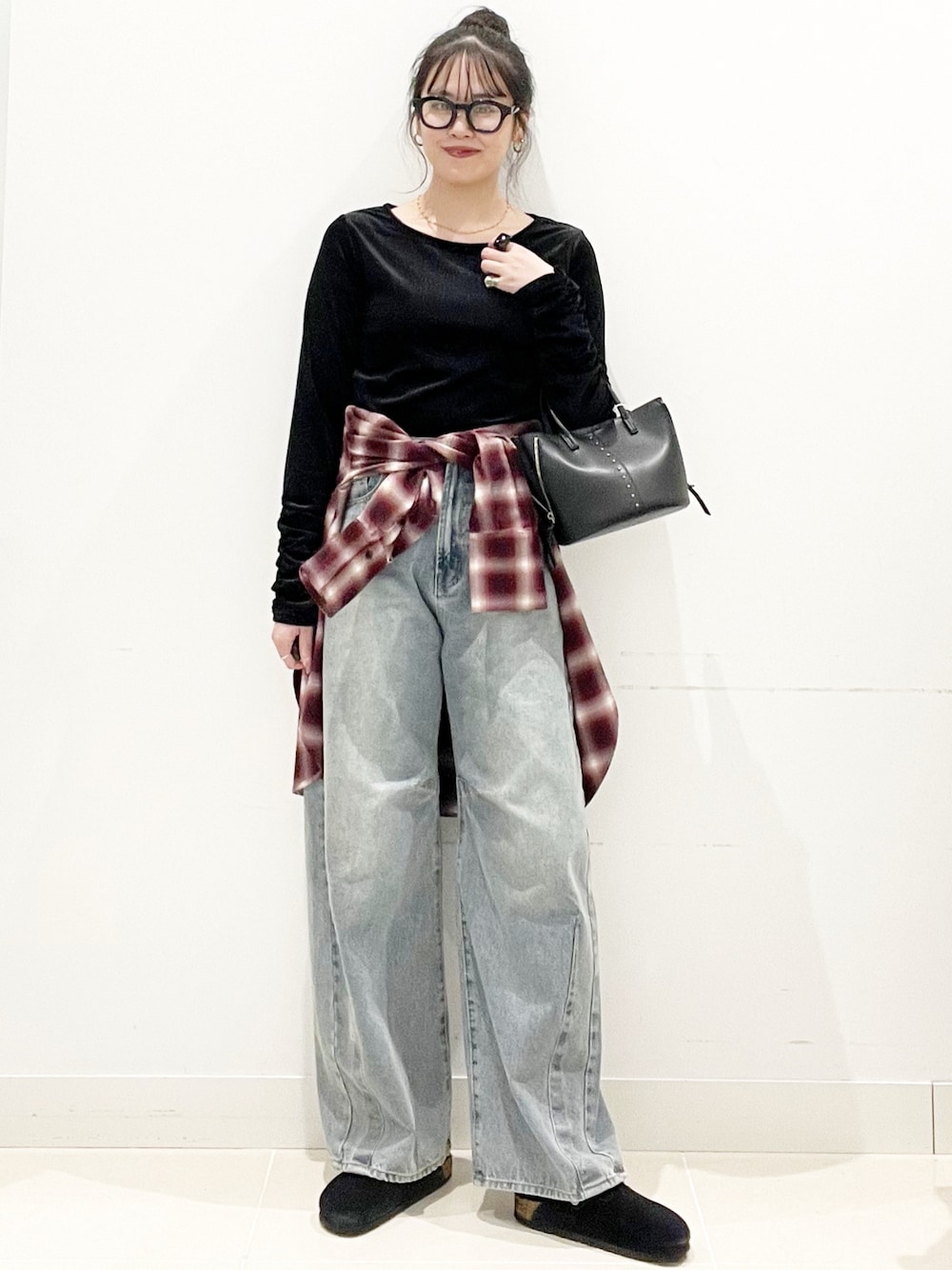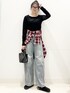 今回は秋のお出かけコーデです♪ シャツを巻いてトレンドスタイル◎ 秋に着たくなるオンブレチェックは 赤が私のイチオシカラーです♡ 生地感もしっかりしていて オーバーサイズなシャツ◎