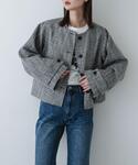 ノーカラージャケット (ブラック系)ノーカラージャケット