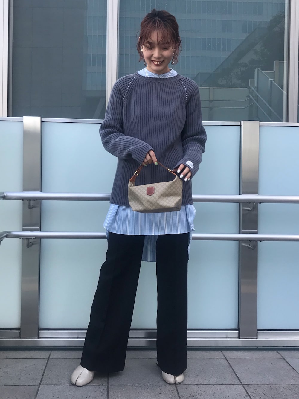 miyata mai.のシャツ/ブラウス「ストライプスタンドカラーデザインシャツ」を使ったコーディネート
