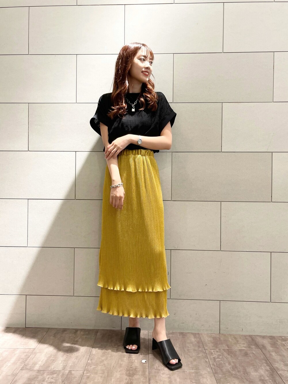 MAIのスカート「プリーツシャイニーティアードスカート」を使ったコーディネート