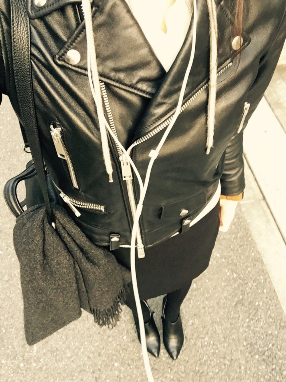 おはようございます☀️ 昨日のコーデです。 夕方から外出して 寒かったのでライダースの前を 閉めたらオールブラック風コーデに なりました(๑⃙⃘•ㅅ•๑⃙⃘)