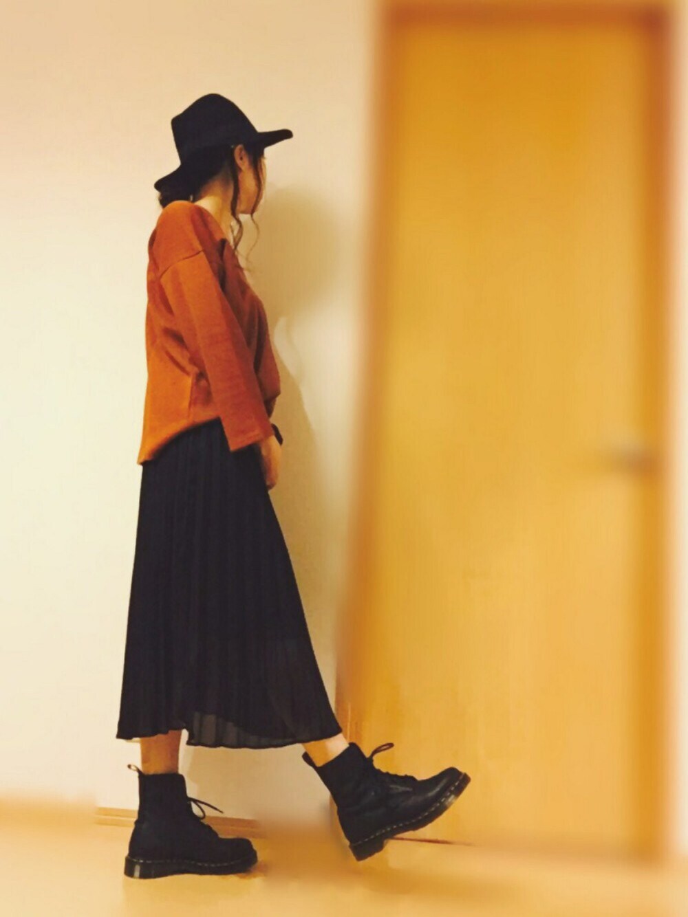 こんばんは☆ 今日は涼しくて秋コーデ日和でしたね。 今年流行り?の色、テラコッタに 挑戦して見ました。 トップス以外は全部ブラックですが… なんだか落ち着かなかったです。笑 いいね・SAVE・コメント 有難うございます♡ 新しくフォローして下さった方も 有難うございます。嬉しいです(*´∀`*)