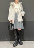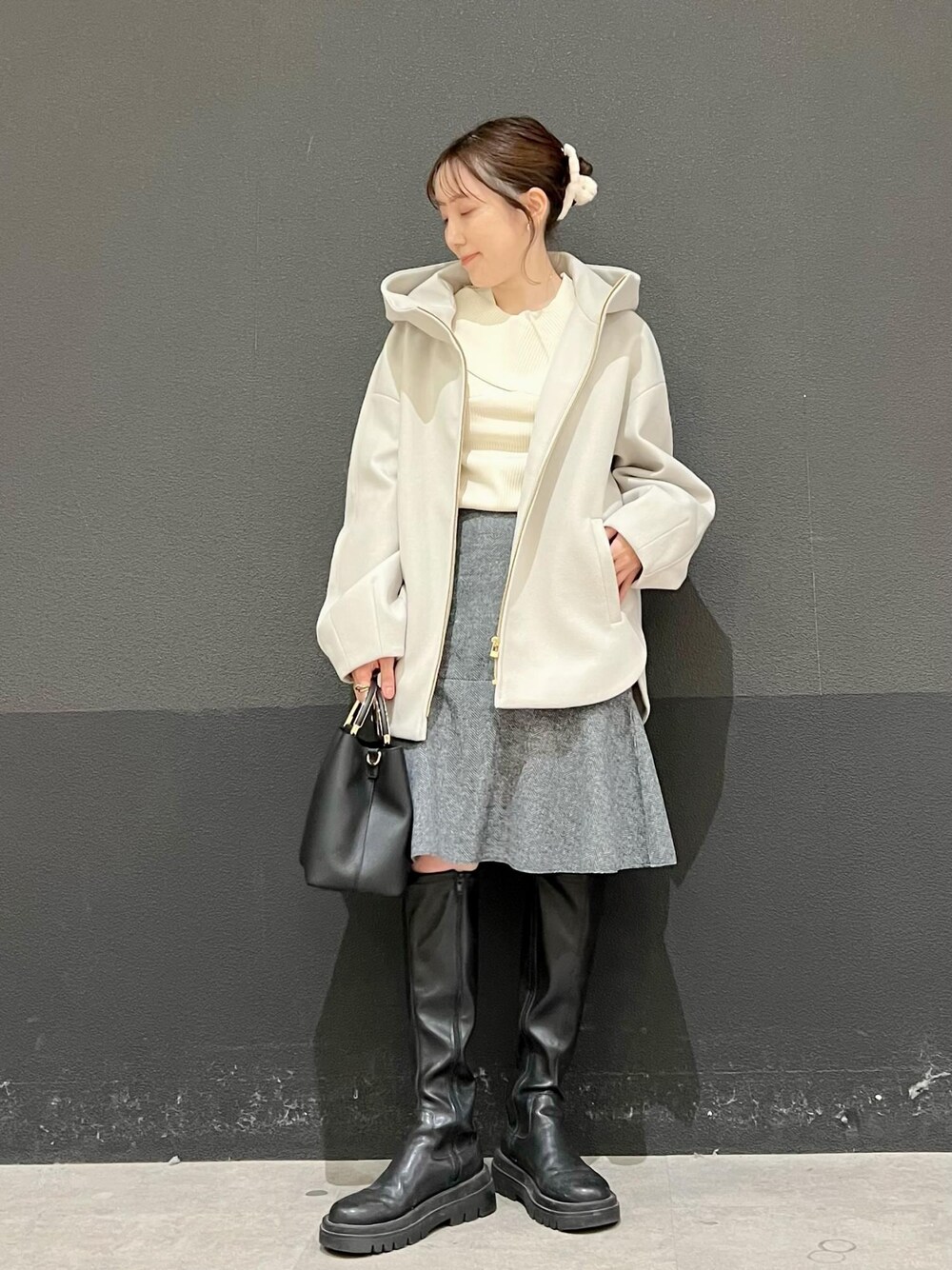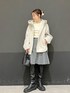 人気のフーディーコートを、ホワイト×グレーの大人カラーでコーディネートしてみました♪オンオフ使えるコーデです◎