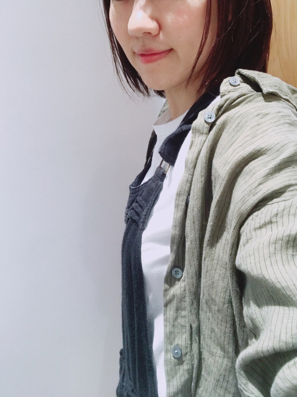 ひとつ前のコーディネートのシャツ羽織ったバージョンです。 このGUのリネンのストライプシャツは カーキの渋い色が気に入って買ったものの… なんかうまく着こなせず💦活躍しないままでしたが、、 今日はとてもいい感じに着られました👔 なーんだ💡羽織ればいいだけ💦🙄 この色やっぱり好きです♡ 洋服って楽しいですね💕 それでは✨