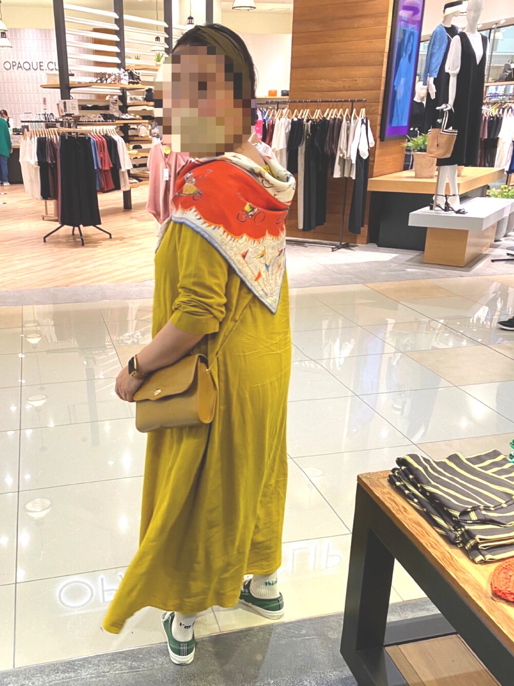 一日中雨の昨日は 濡れないショッピングモールを 渡り歩くウロウロコーデ(*´∀`) 迷子にならないよーに 派手色ワンピ!さらにスカーフ! でもどこも割と空いてたな〜 最高20℃