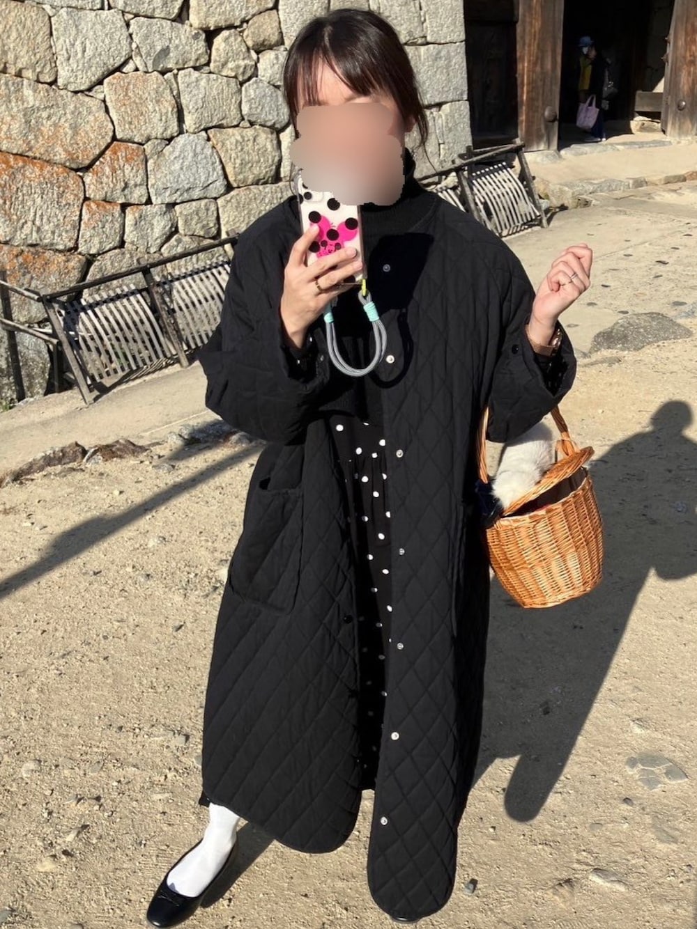 前日に急遽決まった四国旅行〜 温泉行くから脱ぎ着しやすい らくちんワンピで♪ これまた万能なリブラコートを 今年初おろしで着たのに、 いきなりカメムシON、、、異臭もON そしてお城の天守閣登ってったら 急階段をコートの裾で お掃除しまくってた! ダブルでぴえん🥺 最高11℃ だけど日差しで結構あたたか♡