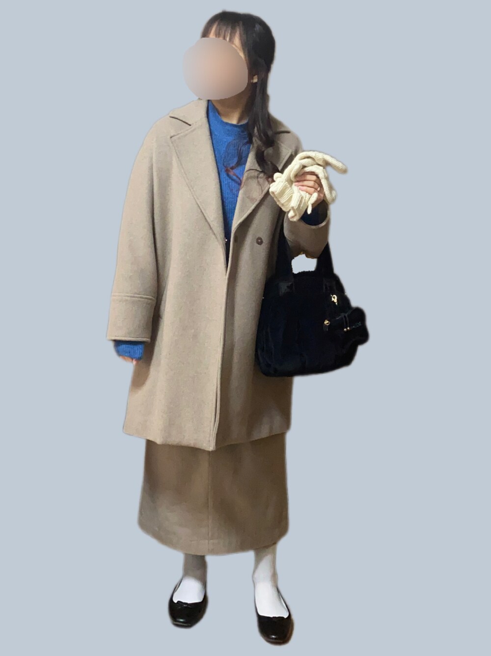 めりくり🎄 クリスマスだけど クリスマスカラーじゃなく ブルーニットが着たくなって 着たいもん着たコーデ😊 なんとなくハーフアップにしたら お出かけコーデ風になったけど うちのサンタは帰ってこない 出張DAY🎅ろんりークリスマス 1人でケンタッキーでも食うたろかな 最高9℃