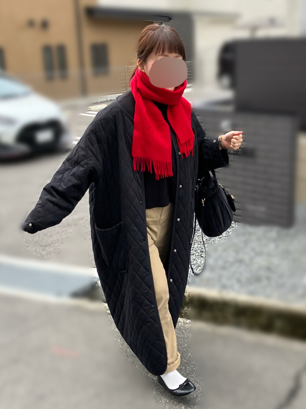 maicccのノーカラーコート「キルティングボリュームコート」を使ったコーディネート