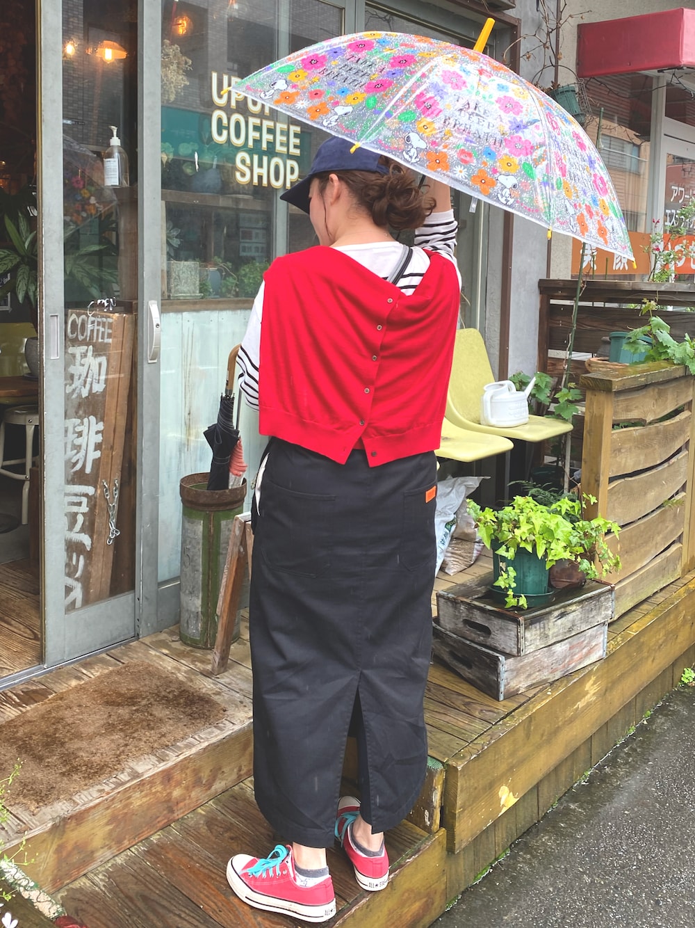昨日コーデ 朝から雨やったので かわゆい傘持って かわゆいワンコロのいる ステキなカフェに〜☕️ 内装も素敵すぎるし コーヒーも美味しくてサイコーやで グルメにまみれた楽しい連休は あっとゆーまやけど またすぐに楽しみな連休だ😊 最高20℃