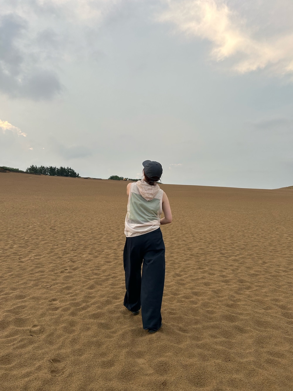 お気に入りのパンツ 暑いからタンクトップで過ごしたいけどあまり露出したくないタイプ ベストを羽織ってラフだけどラフすぎないコーデ このベストはワークマン女子のメンズコーナーのSサイズです。袖部分も取り外しできる優れものです^^