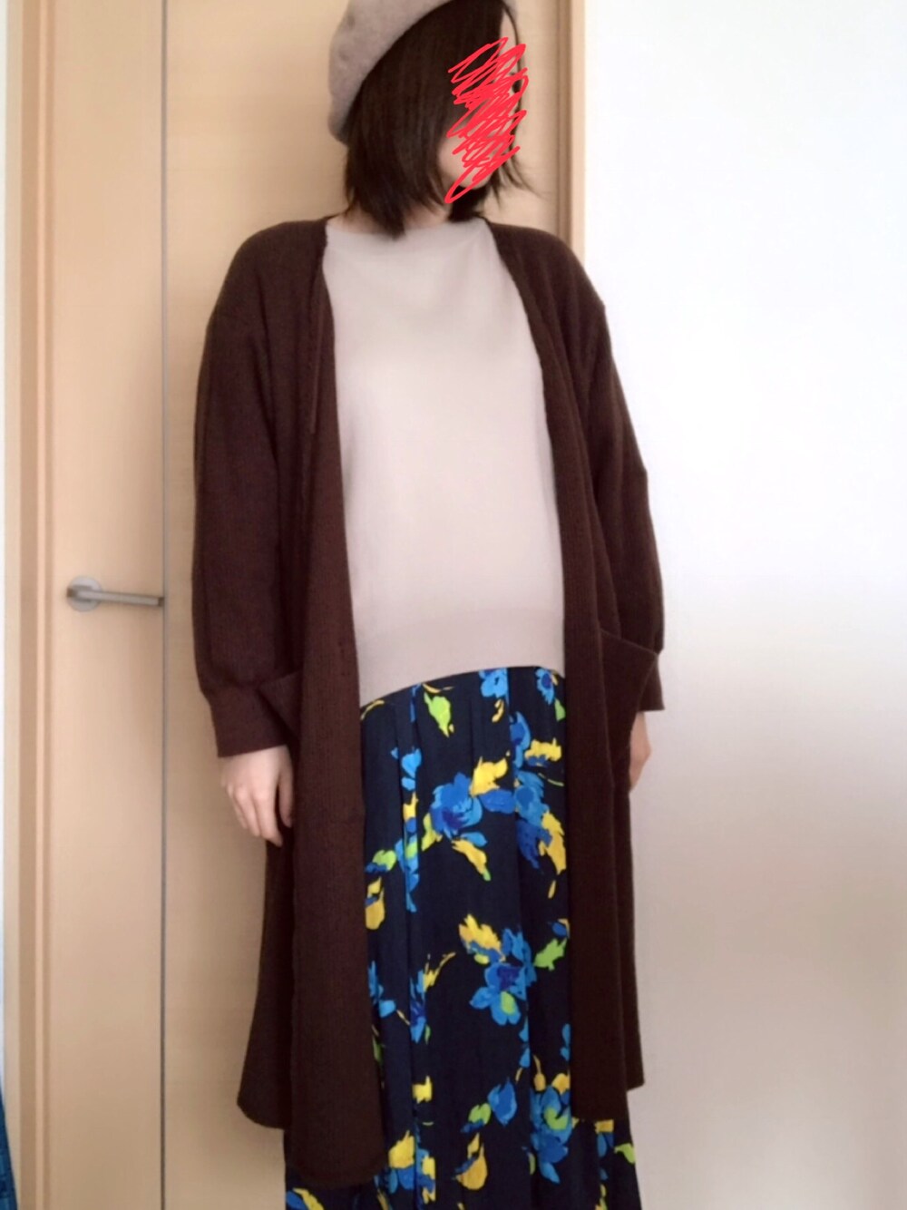 . 派手柄スカートが可愛い。