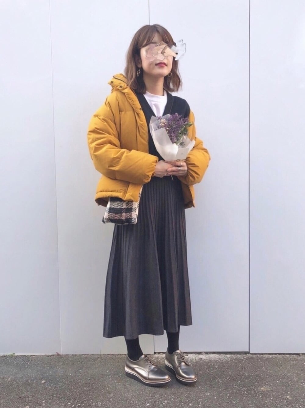 ニットスカート、予約待てなくてグレー! 154の私でも着られる長さが💯 今年の冬もダウンを着て乗り越えます〜