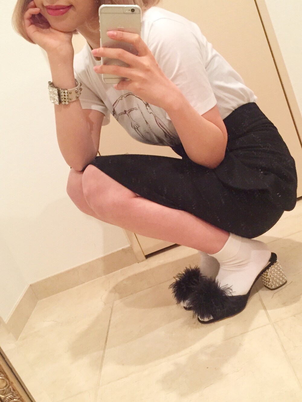 お気に入りのmiumiuのぽんぽんつきミュールがポイント♡