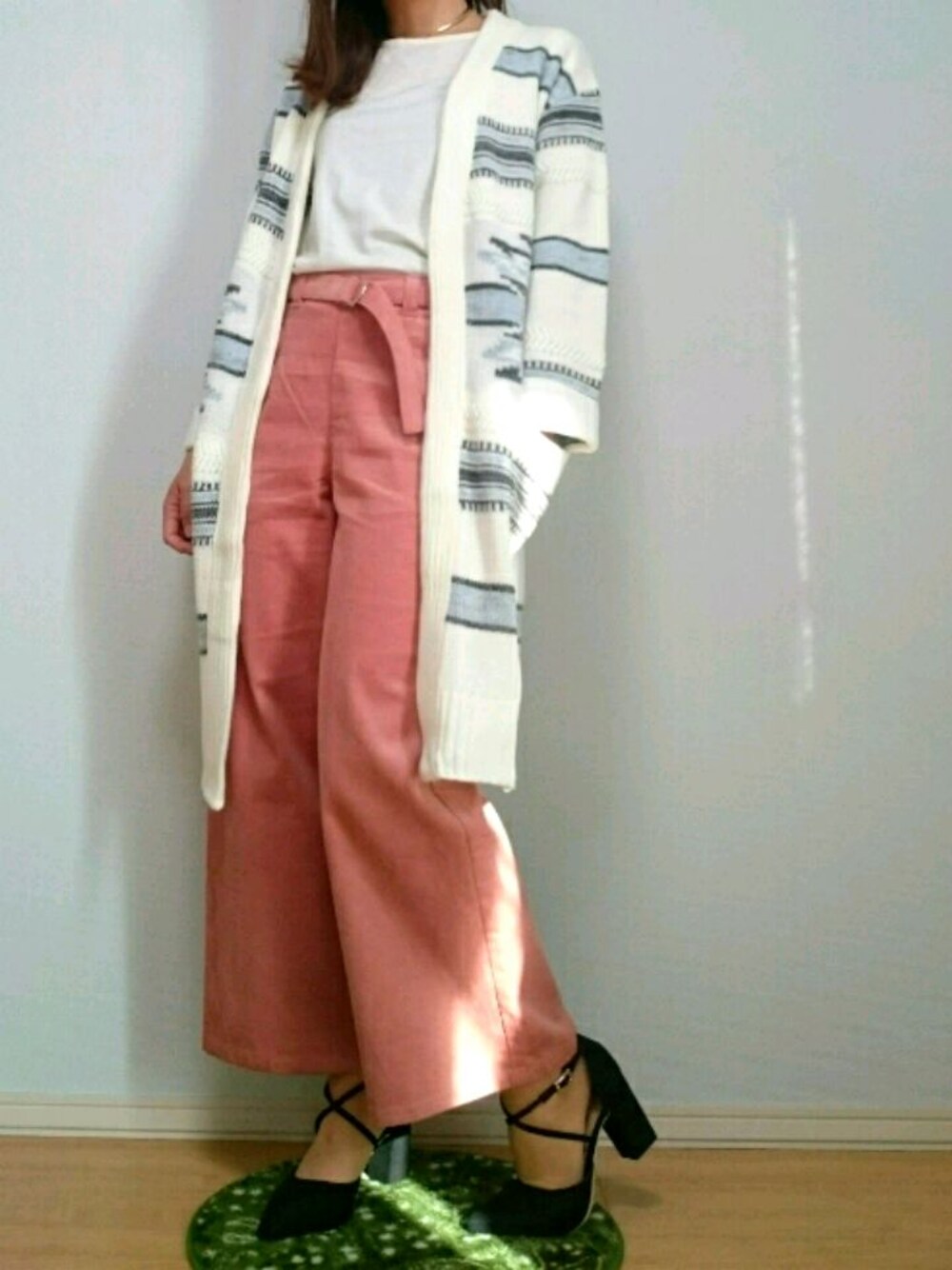 最近ピンクコーデにはまっています💓😍💓大人っぽいくすみピンク❤ ピンクのコーデュロイのワイドパンツはWEGOで一目惚れして買っちゃいました🎵 オルテガ柄のカーディガンは欲しかったけどお金なくて我慢してたけど諦めきれなくてお店に見に行ったら少し安くなってましたー😻ラッキー✴