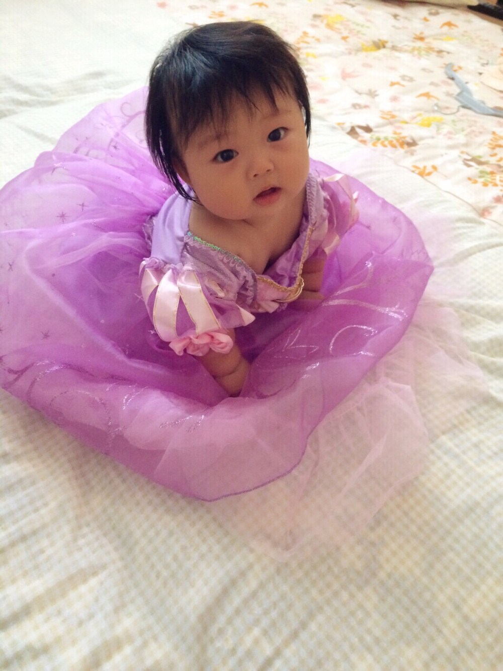 ▽娘コーデ▽ じいじのNY土産でドレスをたくさんもらいました😚💕大好きなラプンツェル着せてみたけど、、、でかい笑 110っていつになったら着れるかな? てかどこに着ていこう、、、😂笑