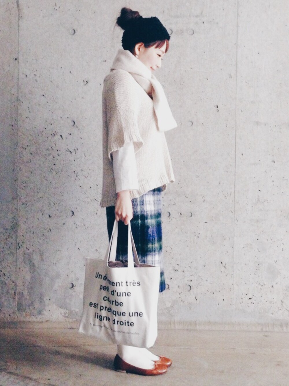 11.5 wed 今日は楽しみな会へ * 寒くなってきてうれしいです 首まわりはぐるぐるもこもこ ホワイト♡グリーン ニット:JOURNAL STANDARD スカート:TOMORROWLAND 靴:Repetto トートバッグ:3coins