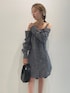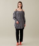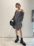 152センチの私はミニワンピースとしても着れちゃうオフショルダートップスです。 切りっぱなしのデザインがモードで、リボンで甘さもありながらウエストマークでしっかりとスタイルアップしてくれます。 オフショルデザインはインナー次第でシーズンレスに楽しめそう。