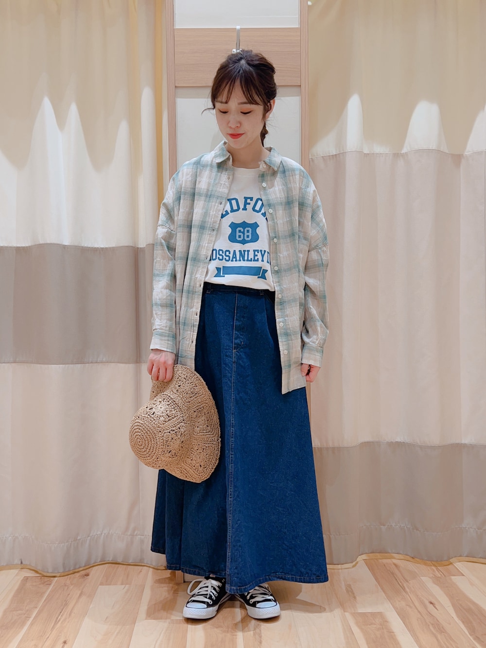 torikaiのデニムスカート「デニムトラペーズスカート」を使ったコーディネート