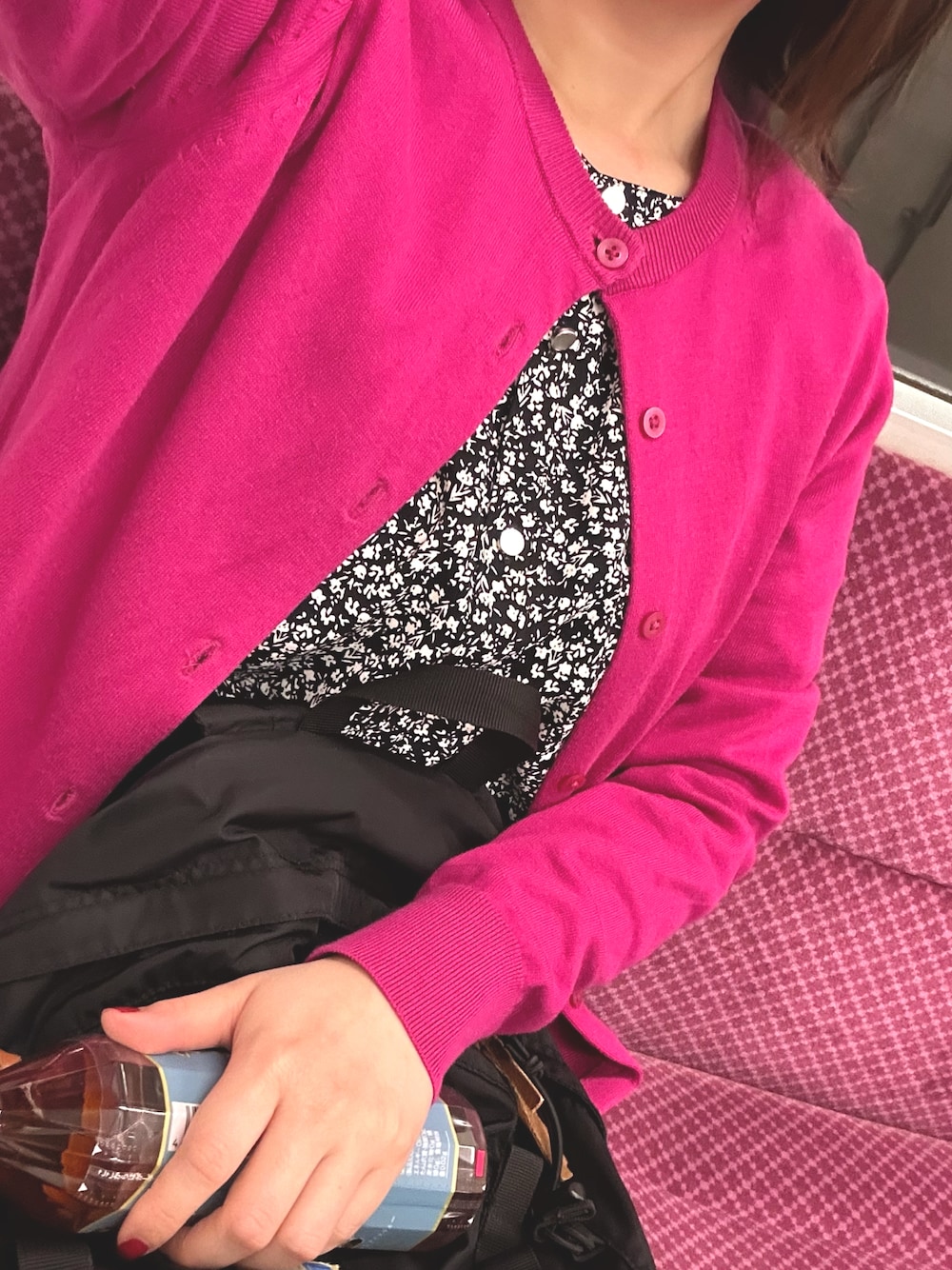 ピンクカーディガンお気に入り🩷 午後の紅茶アールグレイ今年も買えた🤭 めめのCM良き🫶🏻🖤