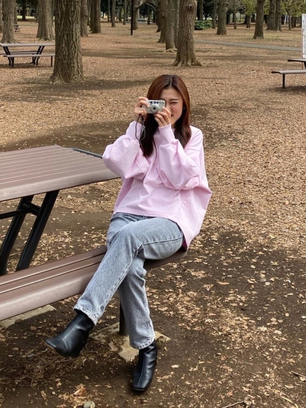 この春はぜっったいピンクのトレーナー買うって決めてて 即決したトレーナー💗 色がドンピシャだったこの薄ピンクが最高に可愛い💜