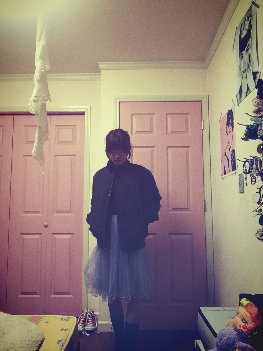トップスはGUの新宿店で安くなってたのです✨ MA-1はGUのメンズで、サイズはレディースより少し大きめです! 上は色合いとアイテムでボーイッシュにして、下はチュールや細身なブーツでレディース感をだして甘辛コーデにしました〜(ت)♪