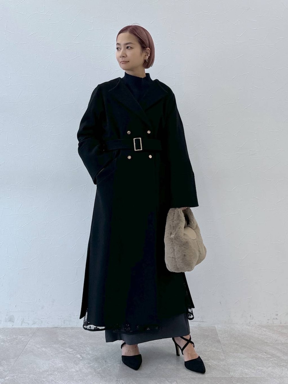 ご覧頂きありがとうございます♡ >コート 上質なウールを使用し紡績技術を駆使し軽く仕上げた生地で見た目も着心地も◎ 暖かさと軽さが抜群です! ノーカラーで首周りがスッキリしているので、顔まわりがスッキリとスタイルアップ♡ ストールなどで温度調整も出来るのが嬉しいポイント。 シンプルなシルエットでスタイリングを選ばす着用でき、着心地の良い軽さ、足捌きの良いサイドスリット、さりげないWのゴールドボタンで女度が上がるオススメのコートです。 >ニット ウール×カシミアの上質な素材が柔らかく軽くて暖かさが抜群です! 繊維が柔らかくチクチクせず着れるのも嬉しいポイント。 冬に嬉しいプチハイネックデザインで首周りも暖かく、アゼ編みの表面感は立体感が有り程よいルーズ感が大人なニットスタイリングを楽しめます。 >スカート なんといってもトレンドなスパンコールのチュールレースが目を引くラップスカート! ベーススカートは表面感に微光沢がありきれいで、すとんと落ちる美シルエットでどんなスタイリングにも合う優秀アイテムです。 センターバックにベンツも有るので足捌きもよく履き心地抜群です。 >雑貨 ウエアーがブラックコーデの時は素材感の有る柔らかい印象のベージュバッグを合わせてフェミニン要素をプラス。 シューズもセパレートパンプスでレディーにこなしてかっこいいと綺麗のバランスコーデを意識しました。 ゴールドとシルバーのMIXカラーイヤカフは取り入れるだけで今っぽい印象になります。 参考になった、いいな♡と思ったら写真右下の♡ボタンをお願いします。 ライフイベントや40代の気になるお悩みを解決するスタイリングやテクニックをUPしてますので、TOPページからぜひFollowしてください♡