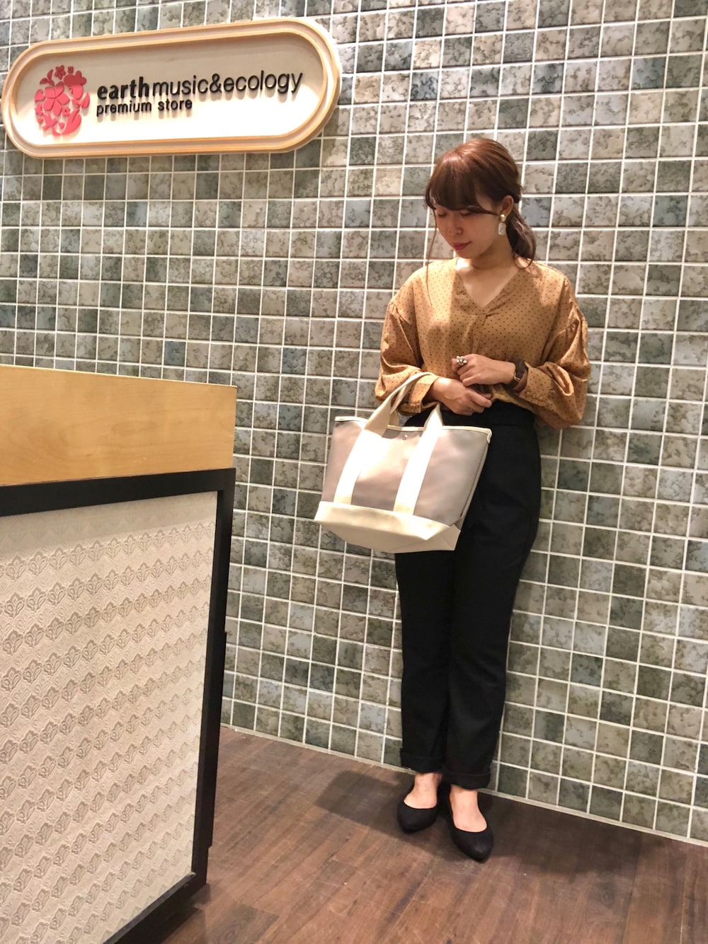 mのハンドバッグ「テープ使いバイカラートートバッグ」を使ったコーディネート