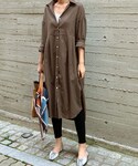 maiのシャツワンピース「タックシャツワンピース」を使ったコーディネート