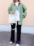 maiのデニムジャケット「2022 SS オーバーサイズカラーデニムシャツジャケット」を使ったコーディネート
