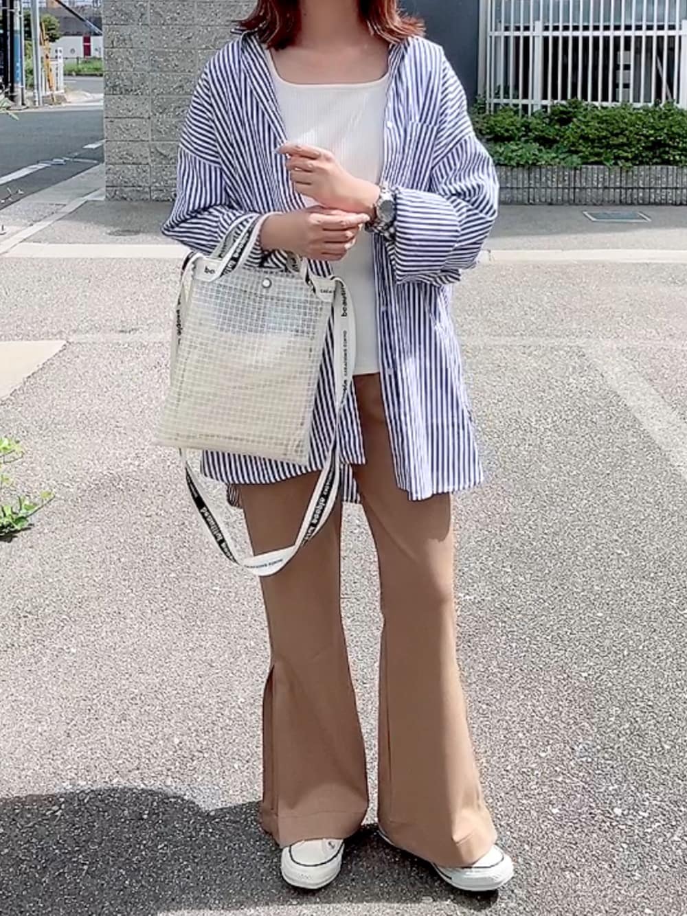 maiのシャツ/ブラウス「長袖カラーストライプシャツ」を使ったコーディネート