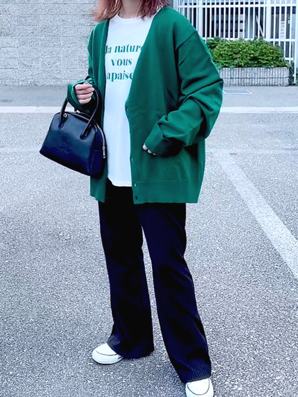 昨日の色ちカーディガン🌵 秋らしい深みのあるグリーンです。