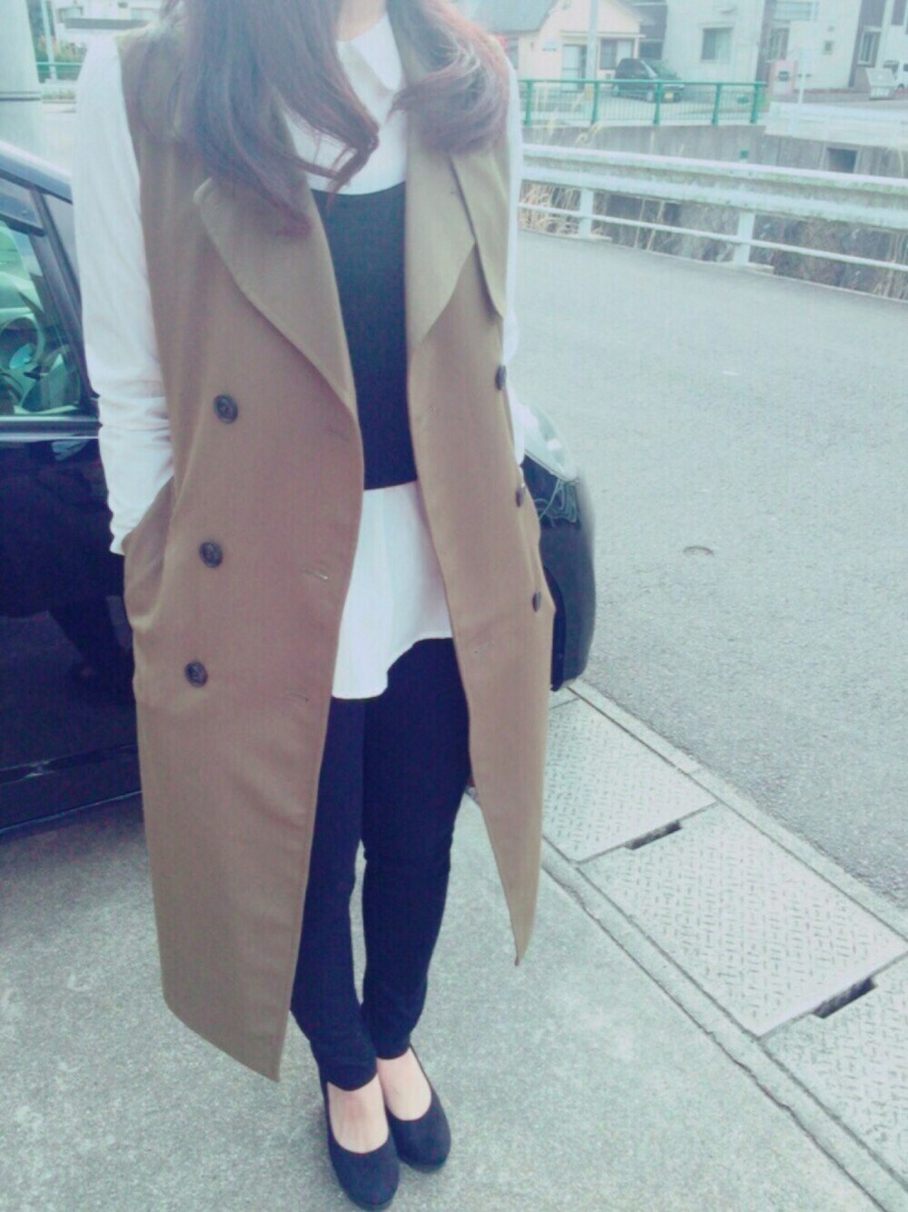 마이のトレンチコート「ユルトレンチベスト 568092」を使ったコーディネート
