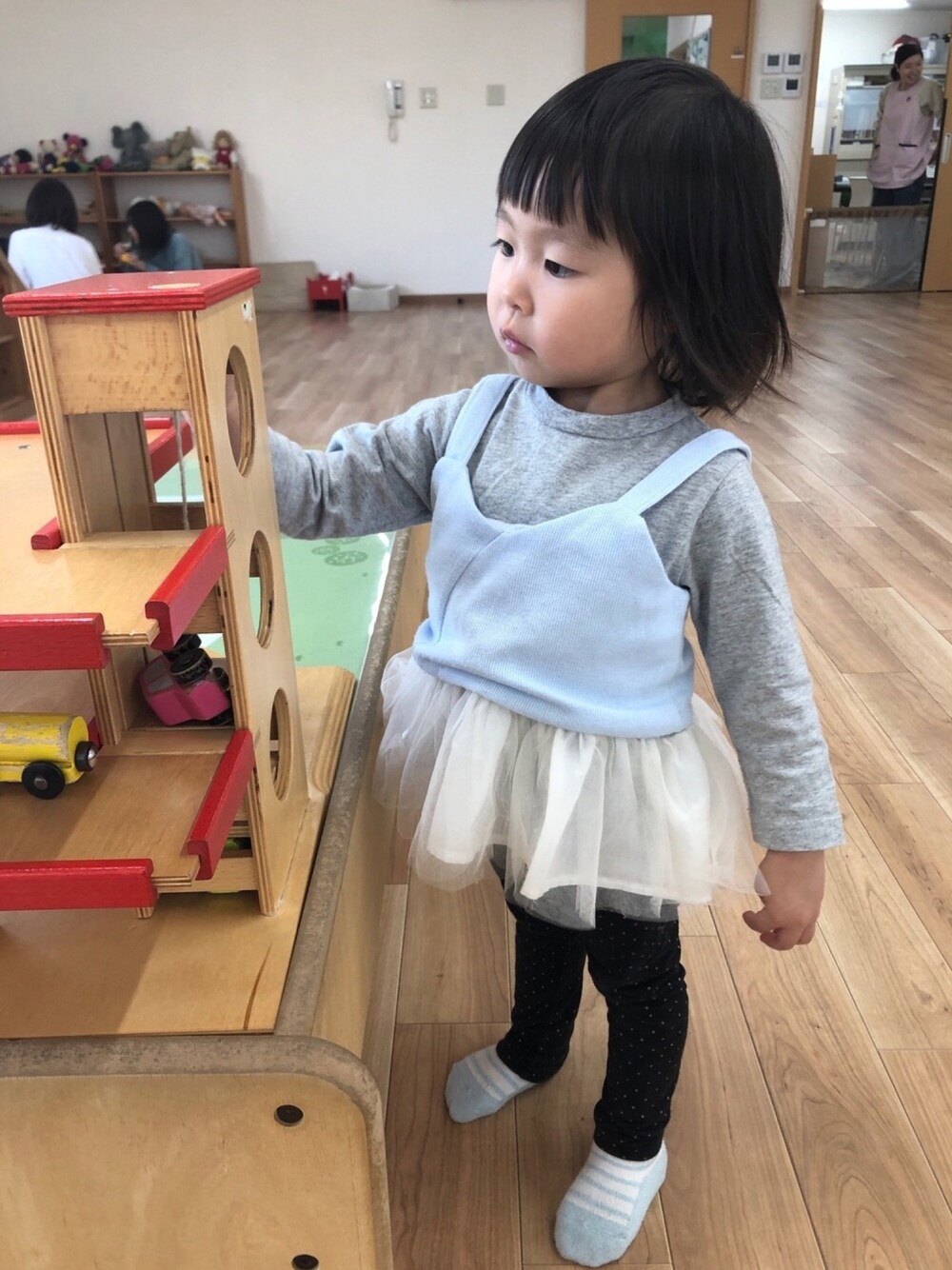 真剣な眼差し! 持ってないから車のおもちゃ🚗とか気になるのよねー