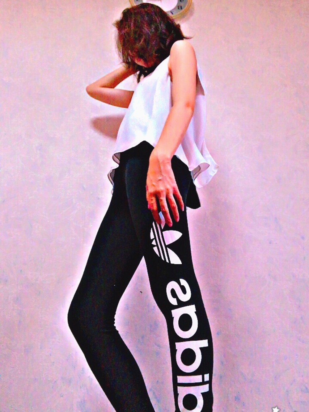 トップスはZARAのタンクトップで背中が開いててリボンになってます レギンスパンツはadidasです モノトーンコーデしてみました