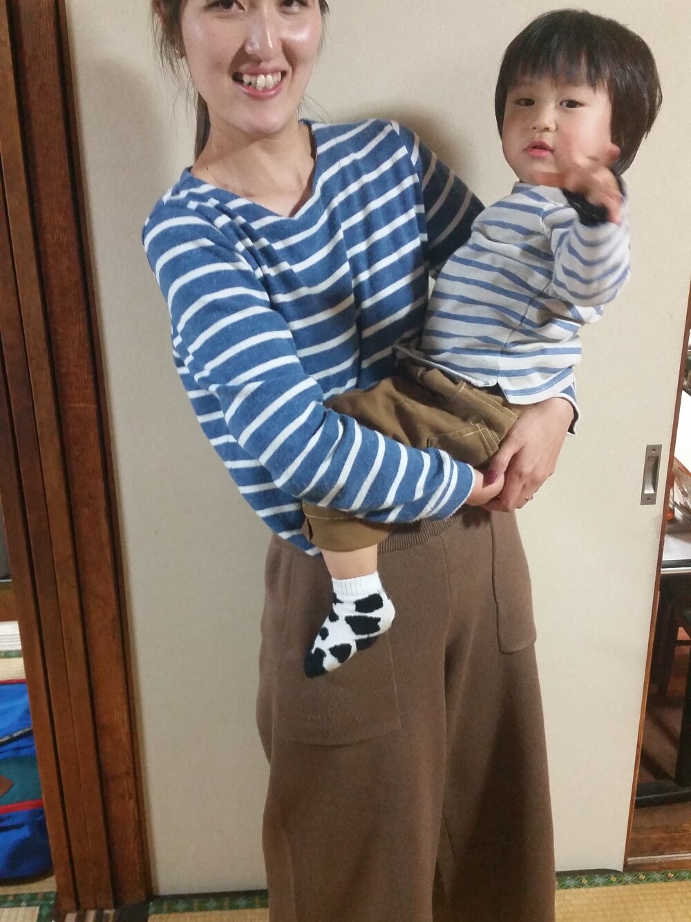 初投稿です❗ この日はブラウン系のパンツと、ボーダーのトップスでリンクコーデ❤