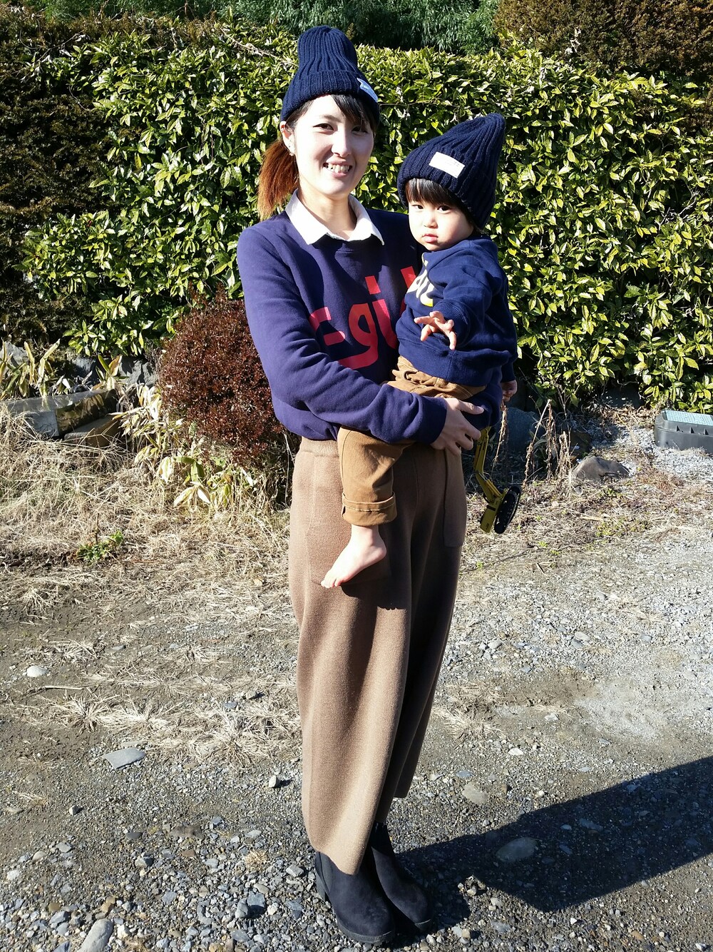 私の実家に新年の挨拶に行った時のコーディネートです❗ x-girlのスウェット 、ブラウンのパンツ、GUのニット帽 でオソロコーデにしました。
