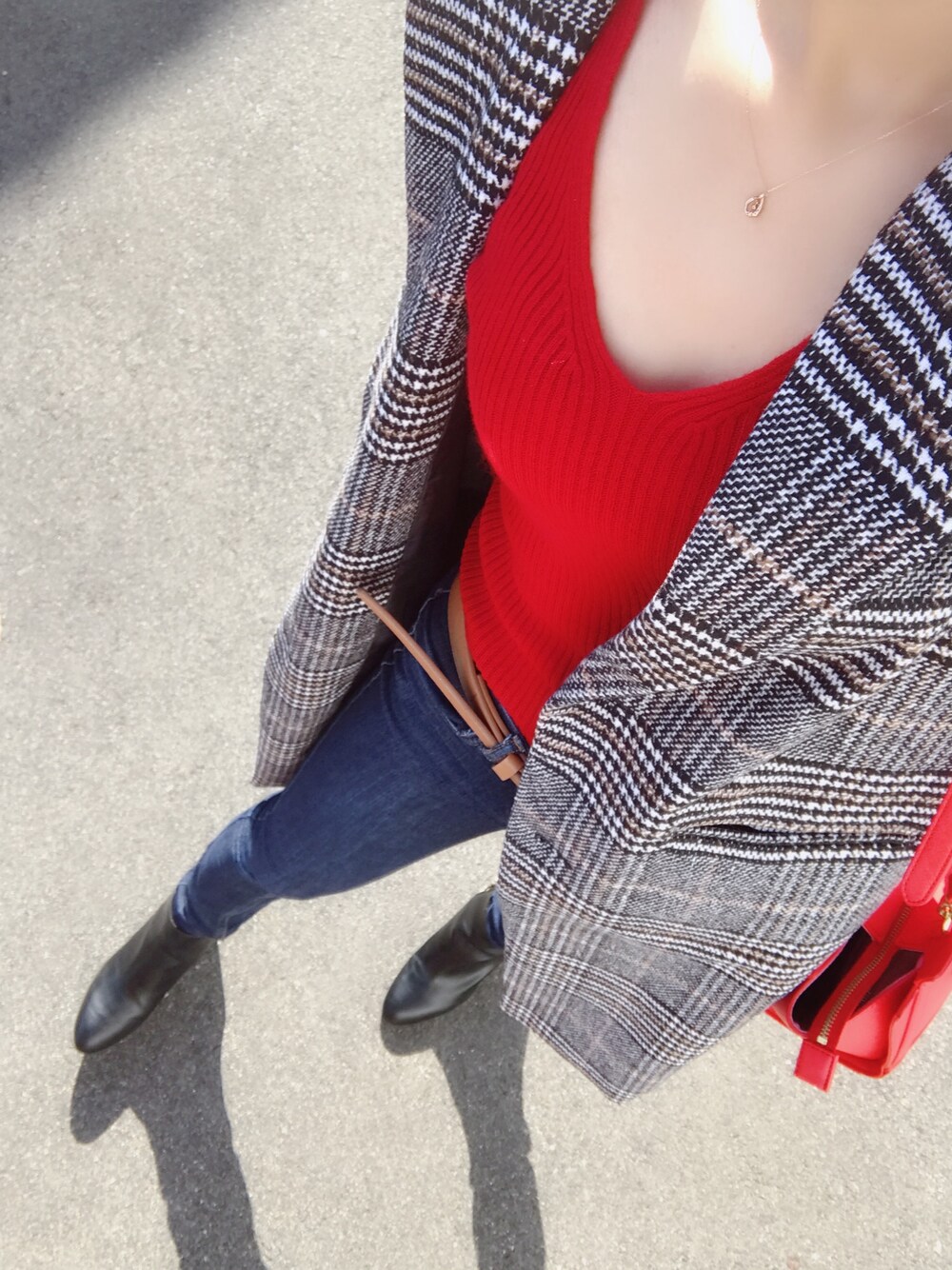 赤大好き人間😳 まだコートは暑かった〜 お気に入りの服は何回でも着なくなっちゃう✨ まだまだ撮り方もコーディネートも素人😂自己満許して🙌