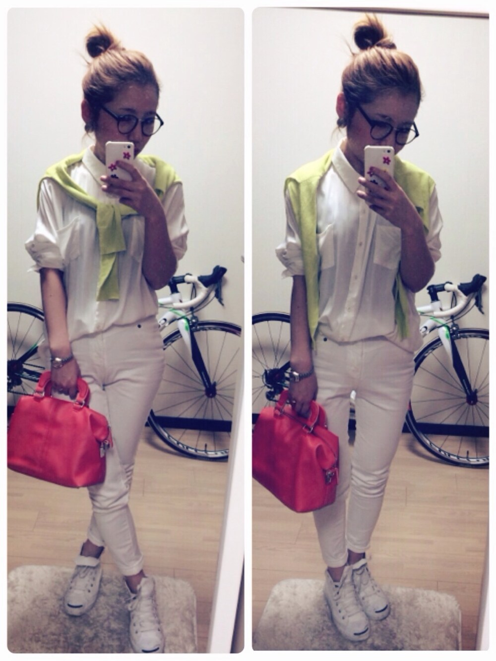 ホワイトコーデに 蛍光黄緑&オレンジをON♡ pts wego shoes convers bag zara