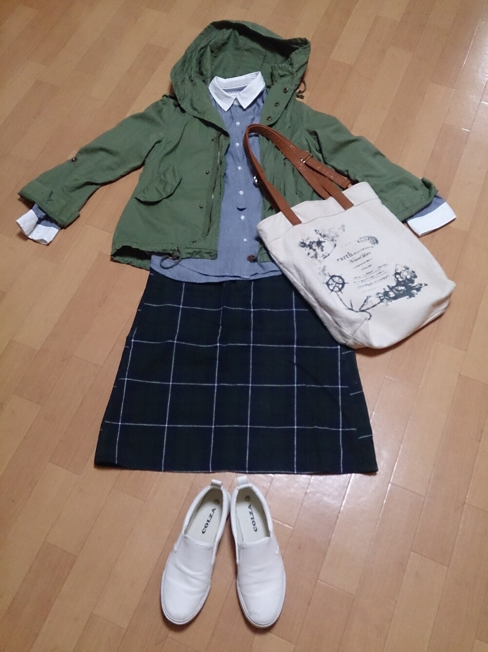 シャツ//ikka ジャケット//gu スカート//DOMINGO バック//earth music&ecology