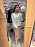 ニットはラメですが肌面のちくちく感が全くありません✨ キャミワンピースは肩紐調整可能ですが、 159cmで36サイズを着用しております! サボも普段通りのサイズで丁度良いです◎