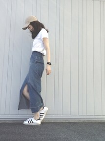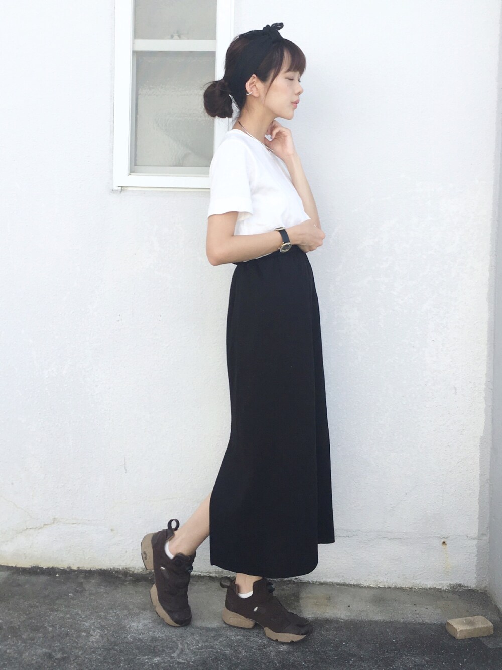 浅倉 まいのスカート「《追加2》CO/PE テレコ ロングスカート◆」を使ったコーディネート
