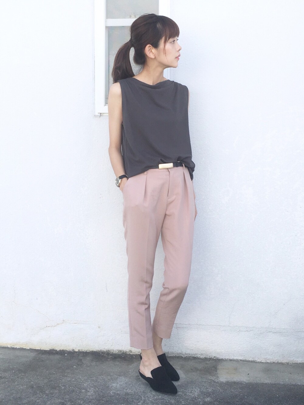 浅倉 まいのスラックス「スリムストレートパンツ セットアップパンツ」を使ったコーディネート